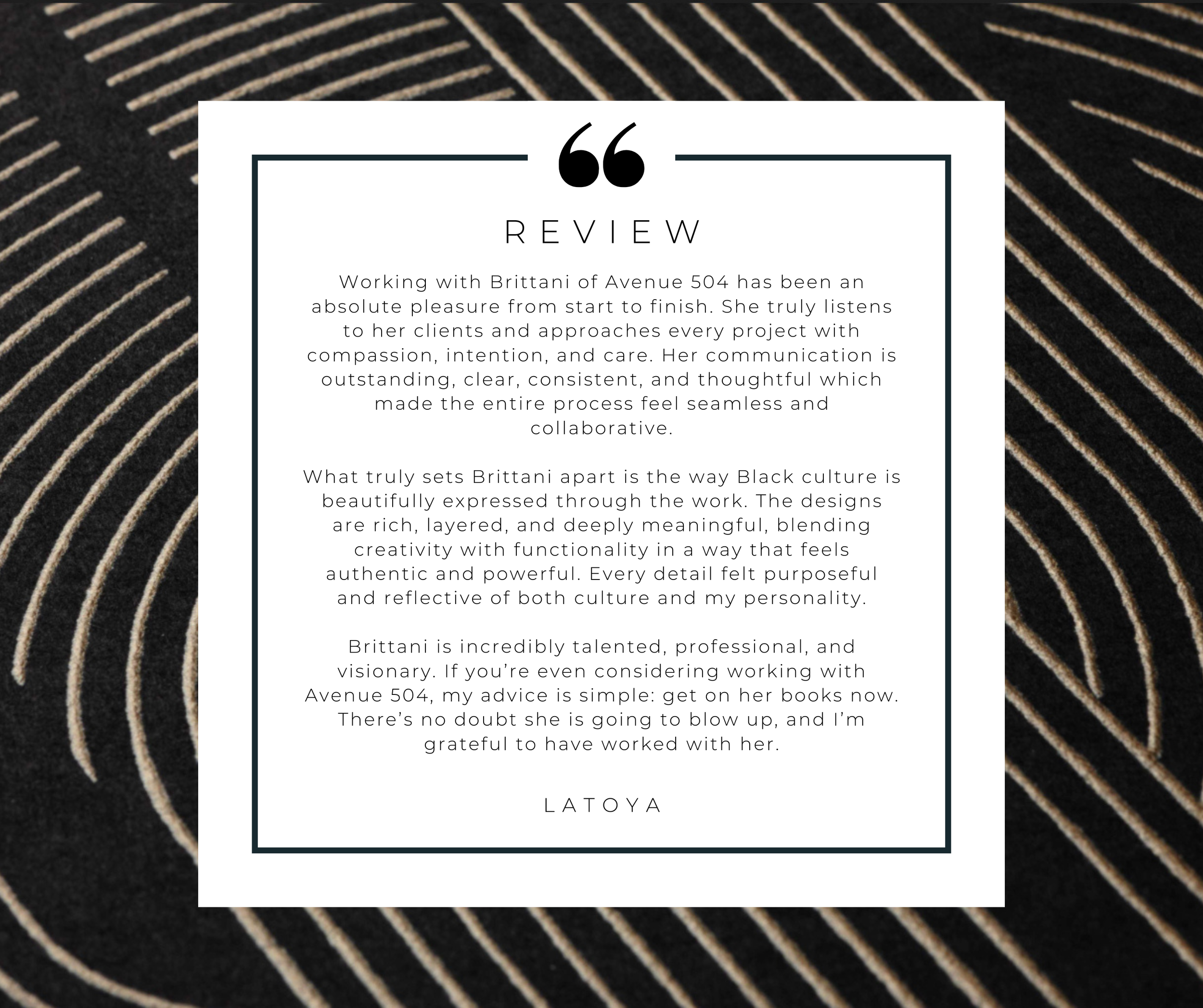 At Avenue 504, we celebrate the beauty of heritage through intentional, modern design. Specializing in Afro-Centered Modern Heritage Design, we blend the rich cultural influences of the African diaspora with contemporary elegance—creating spaces that feel deeply personal, rooted in history, and undeniably refined.