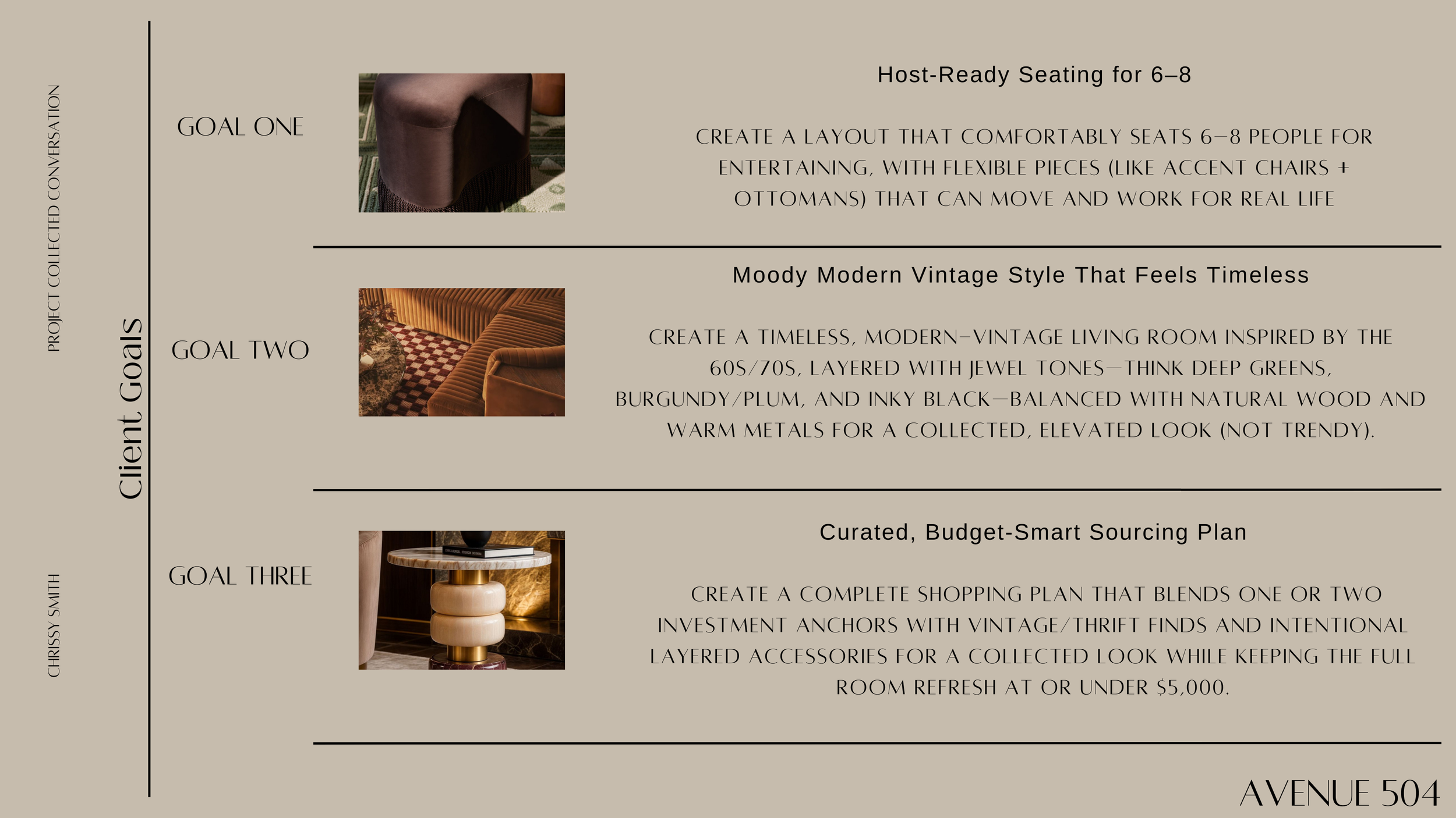 While these may not be the final options for your living room, your feedback helps me refine the vision and continue moving forward in a way that feels most aligned with you and your space.