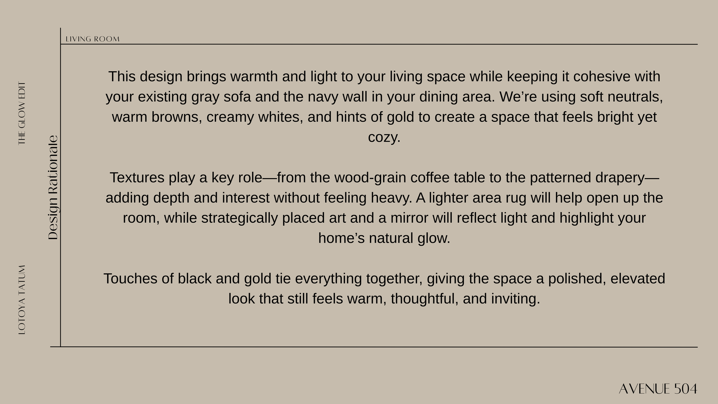 Think of this as your space starting to take shape — a curated mix of furniture, decor, and style elements that reflect the design direction we’re heading in. I’d love to hear what stands out to you, what you’re drawn to, or if there’s anything you’d like to see tweaked